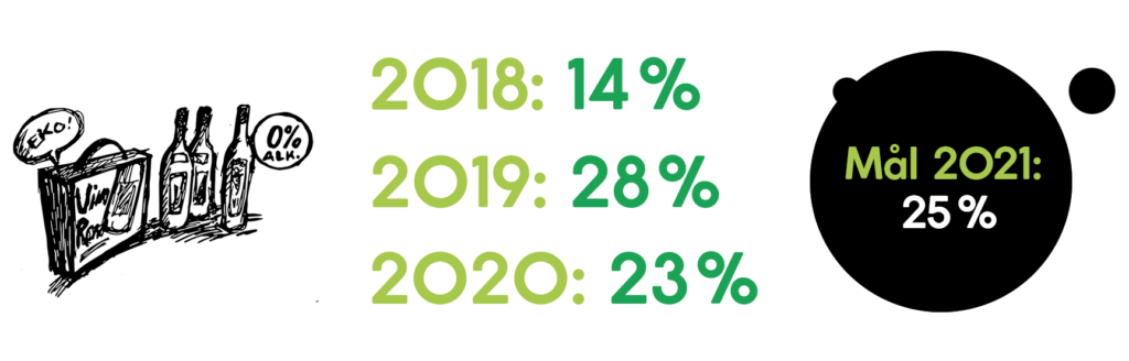 Nyckeltalet visar vår andel EKO sålda liter på Systembolaget av vår totala försäljning i liter. Vi har minskat vår andel p.g.a. minskad försäljning av vår ekologiska cider men vi strävar mot 25 % andel.
