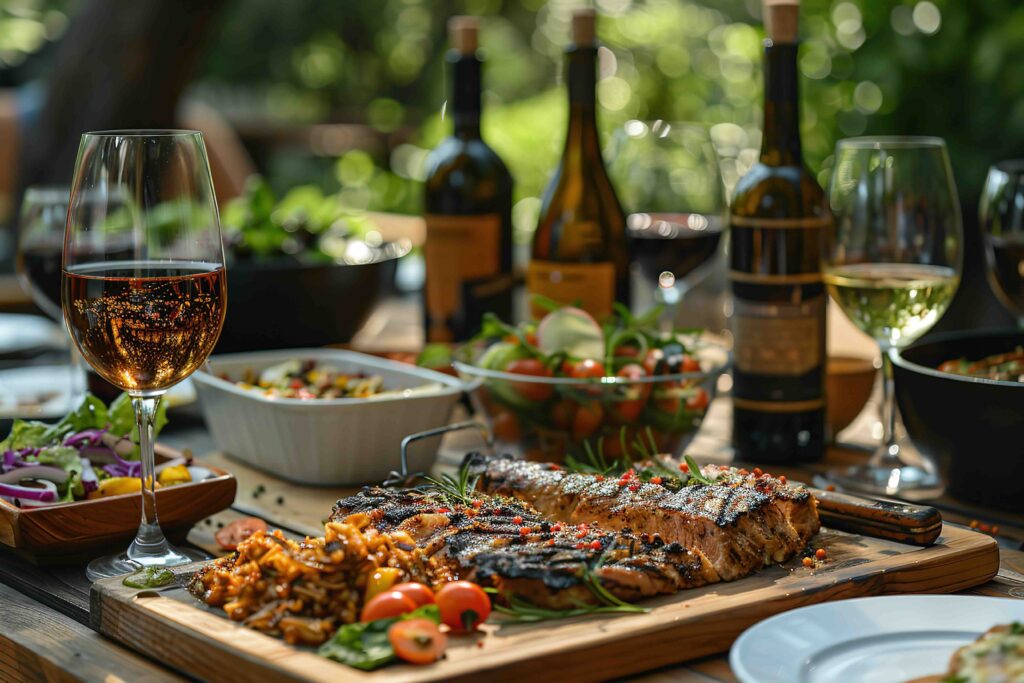Cabernet sauvignon är ett fantastiskt val till grillad mat tack vare sin fylliga struktur, rika smaker av mörka bär och inslag av ek och kryddighet. Vinets kraftiga tanniner harmoniserar väl med rätter som entrecôte, grillade hamburgare eller revbensspjäll, där de hjälper till att balansera fett och kolade smaker. Det fungerar även utmärkt med kryddiga BBQ-såser och grillade grönsaker, särskilt de som har en söt eller rökig marinad.