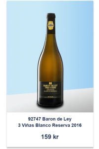 92747 Baron de Ley 3 Viñas Blanco Reserva 2016 (TSE 4800 fl), 159 kr