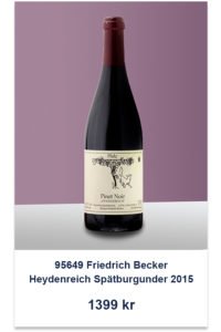 95649 Friedrich Becker Heydenreich Spätburgunder 2015 (TSE 60 fl), 1399 kr
