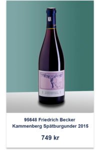 95648 Friedrich Becker Kammenberg Spätburgunder 2015 (TSE 120 fl), 749 kr