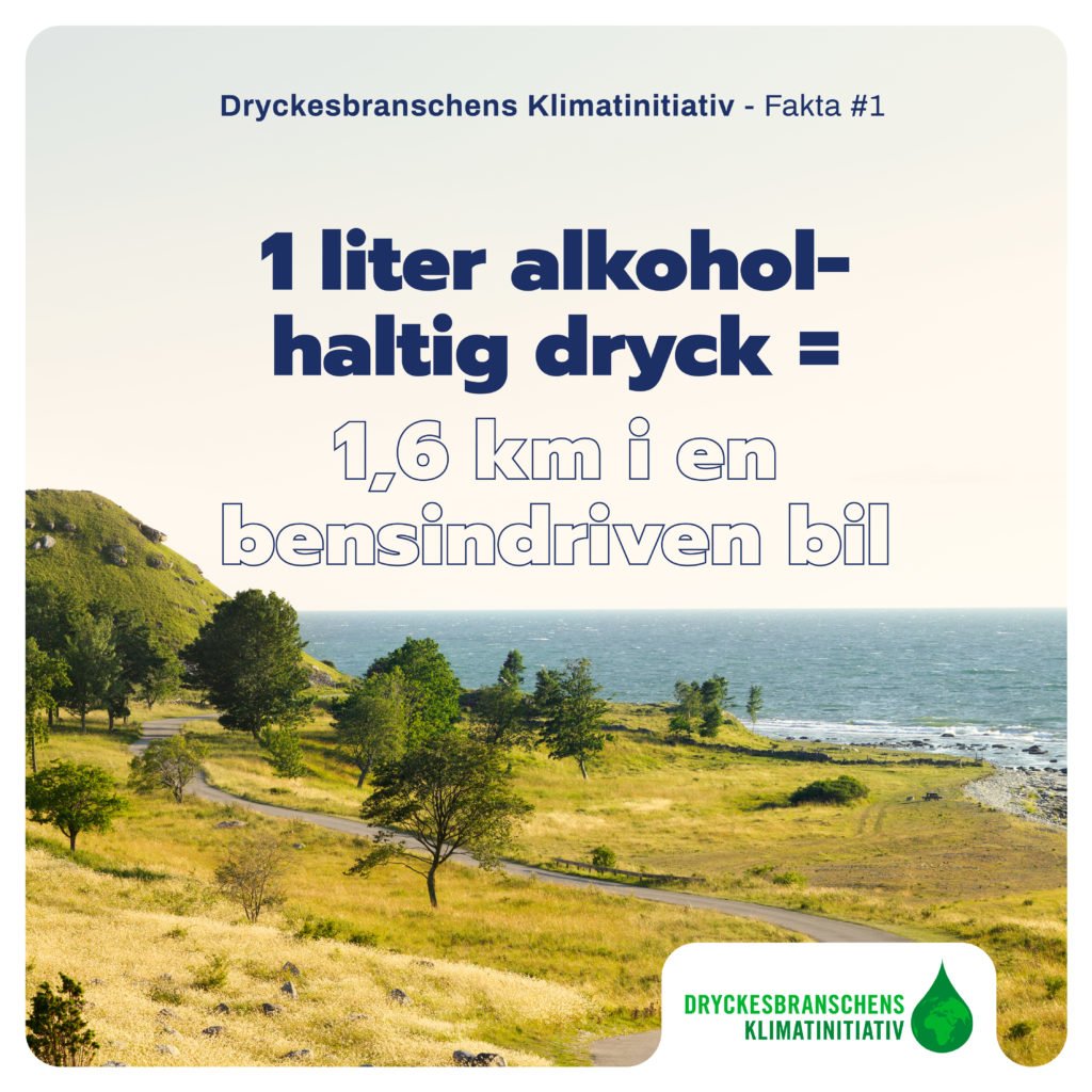 Nu har vi precis släppt vår rapport över dryckesbranschens klimatpåverkan. Här kan du bland annat läsa hur långt du kommer i en bensindriven bil på samma mängd koldioxidutsläpp som 1 liter alkoholhaltig dryck genererar. Fler fakta, och hur vi arbetar mot vårt mål att bli klimatneutrala 2045, hittar du i vår rapport Dryckesbranschens Klimatpåverkan.