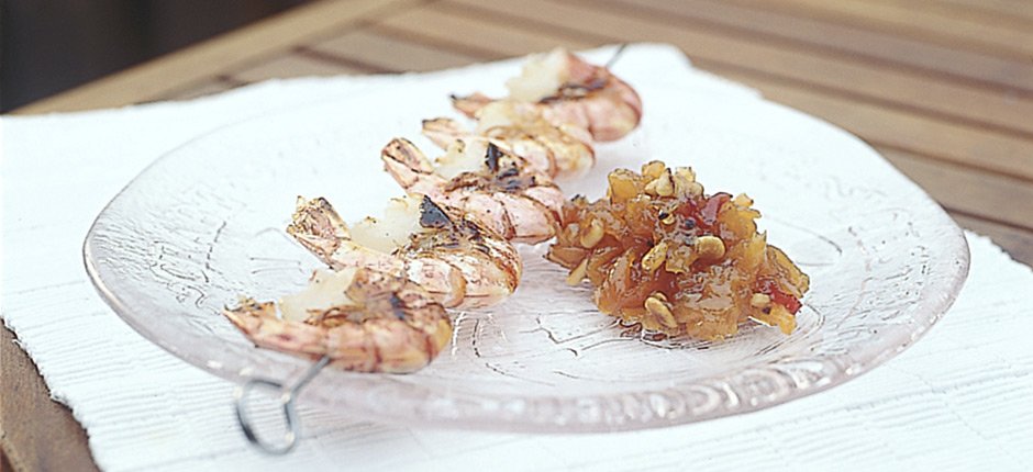 En aprikos och pinjenötschutney passar utmärkt till grillade skaldjur eller fisk, men även till grillat lamm på t.ex. spett med curryris.