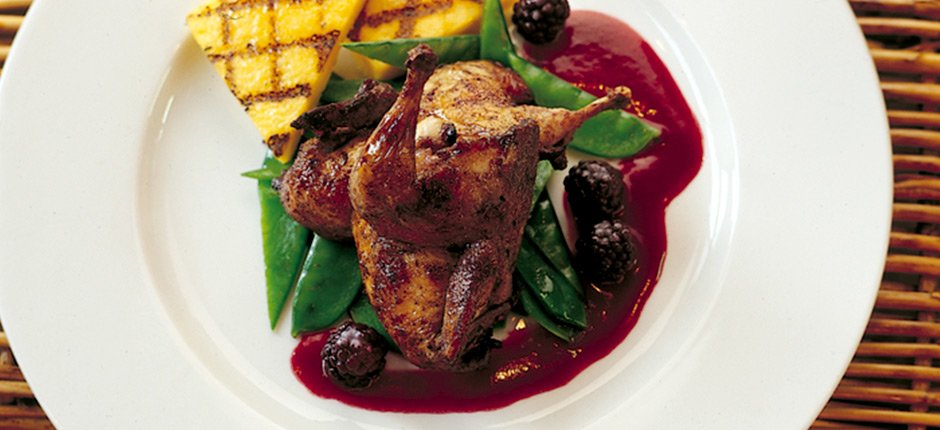 Björnbärsmarinerad vaktel med grillad Polenta