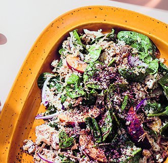 Bulgursallad med grillad kyckling, nektarin och dillyoghurt