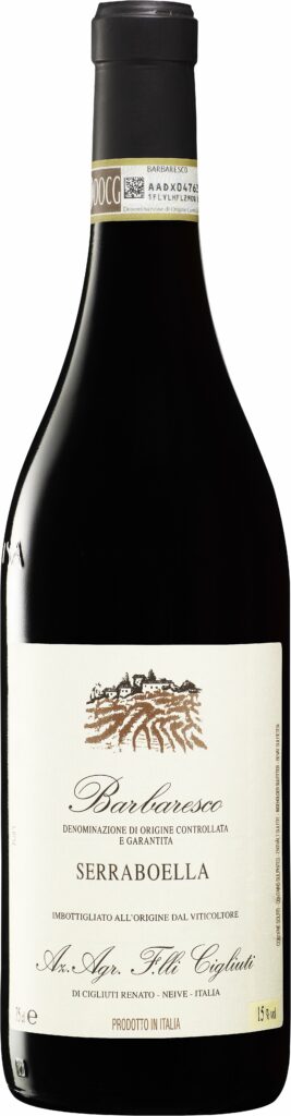 Ung och mycket koncentrerad struktur. Vinet är fullpackat med mörkröda bär, rosor, torkade nypon, fat och kryddor. Vinet har en påtaglig tanninstruktur men är mycket balansera. För den tålmodige finns mycket att vinna på att lägga undan i vinkällaren i minst 10 år. Ett stort vin med andra ord! Efter handskörd och noggrann selektering av egendomens främsta rankors (25-55års ålder) nebbiolodruvor från Cru't Serraboella följer en traditionell vinmakning följt av 26 månaders lagring på slavonska och franska ekfat. Därefter får vinet ligga ytterligare 12 månader på flaska innan försäljning.