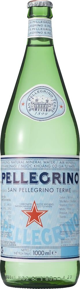 San Pellegrino känd för sina små pärlande bubblor. Tillsammans med vattnets mineraler och den naturligt tillsatta kolsyran blir resultatet ett lätt, delikat bubblande vatten som sägs vara mineralvattnets motsvarighet till champagne. Hela S.Pellegrino-sortimentet är klimatkompenserat.